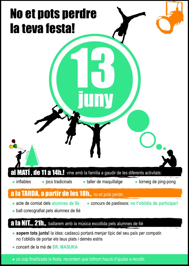 Recordeu que aquest dissabte dia 13 de juny, l’ Ampa organitza com cada any la festa de fi de curs .