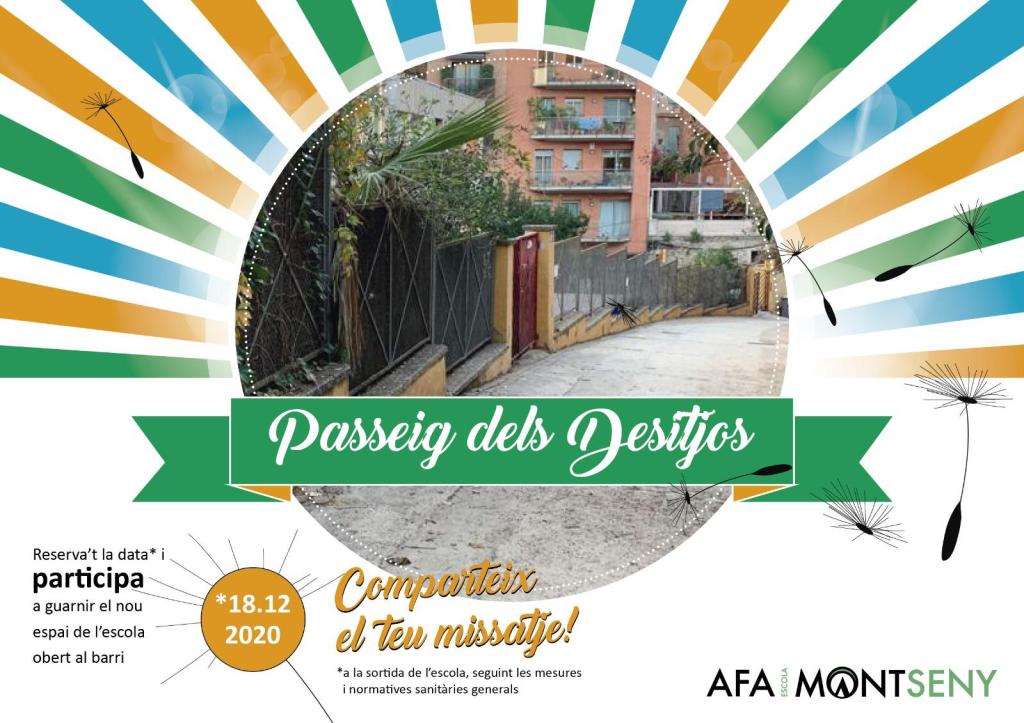 Després d’un any tant diferent, us convidem a participar, el proper 18.12.20 al “Passeig dels Desitjos”💫💫💫un espai obert al barri on qui vulgui, pot deixar un missatge o reflexió, per ser llegit per tothom.📝❤️